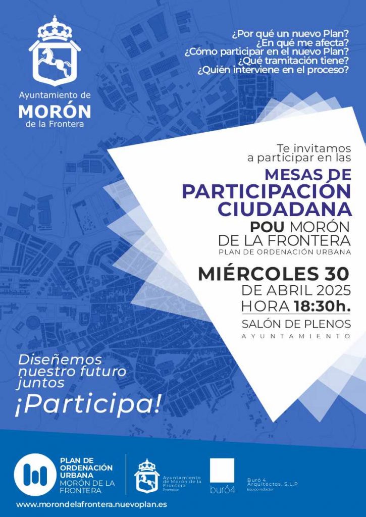 El Ayuntamiento de Morón de la Frontera da un paso más en el desarrollo del nuevo Plan de Ordenación Urbana (POU) con la convocatoria de las Mesas de Participación Ciudadana, un espacio abierto al diálogo, la escucha activa y la construcción conjunta del futuro de nuestro municipio.
